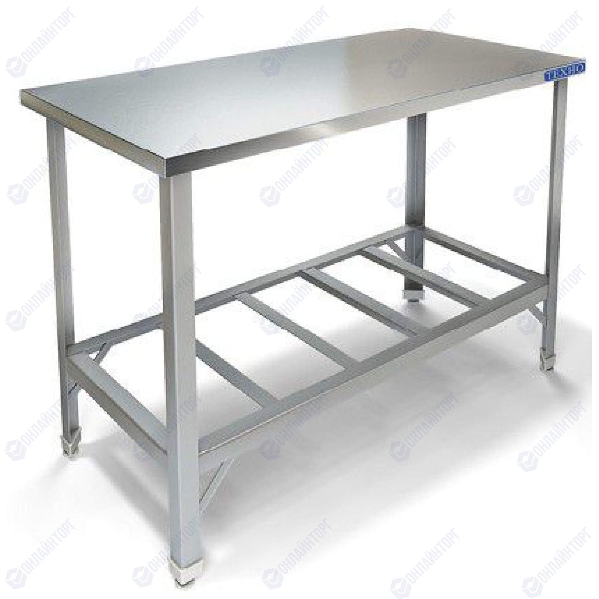500х600х850мм, Стол производственный без борта. Столешница из нержавеющей стали марки AISI 304 толщиной 0,8мм, ЛДСП толщиной 32мм. Каркас разборный из трубы 40х40 нержавеющей стали марки AISI 430 толщиной 1,2мм. Полка-решетка из нержавеющей стали марки AISI 430 толщиной 0,8 мм. Регулируемые опоры. Стол поставляется в разобранном виде.