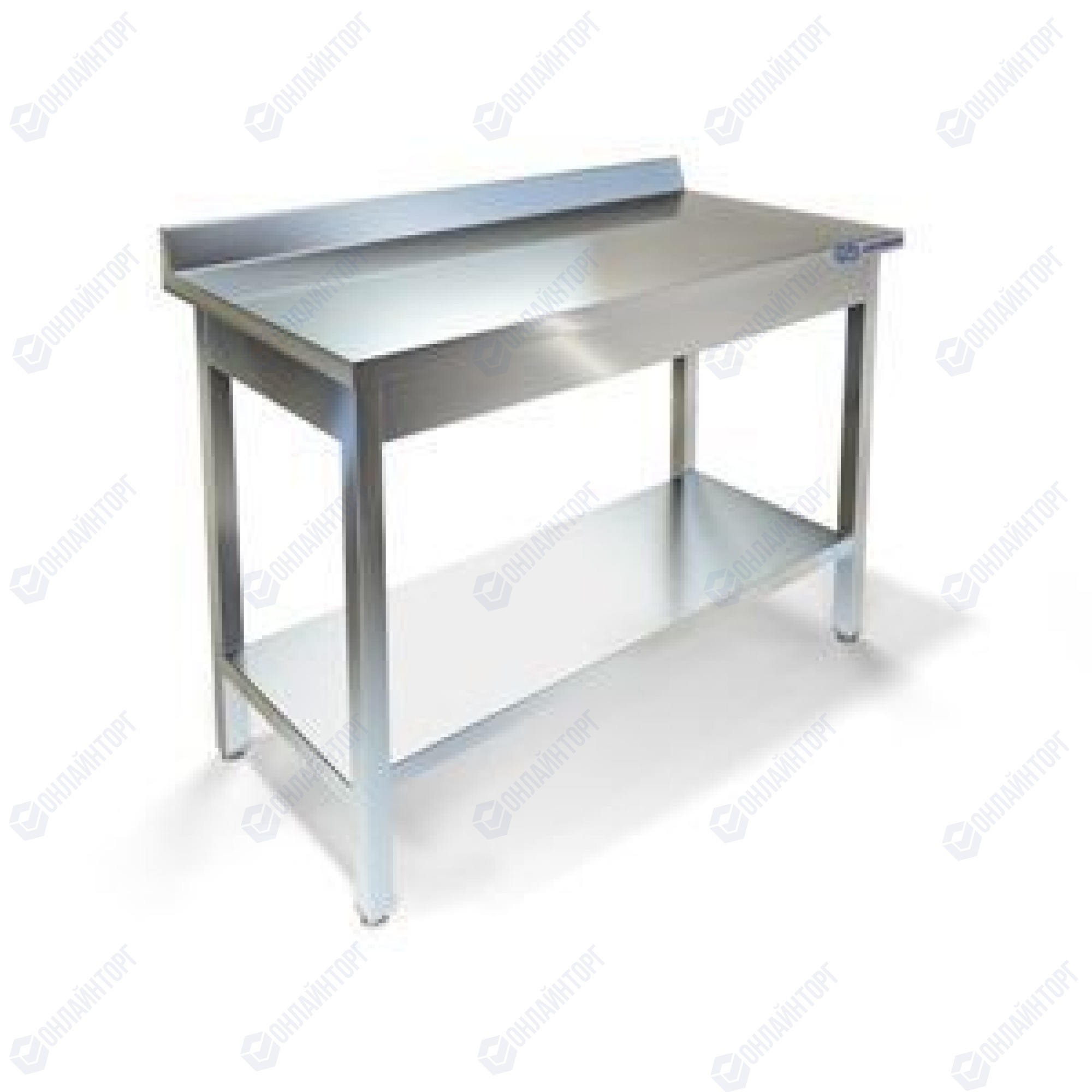 Cтол на нержавеющем каркасе из AISI430, столешница из AISI430 с бортом с усилением из ЛДСП, внизу полка.