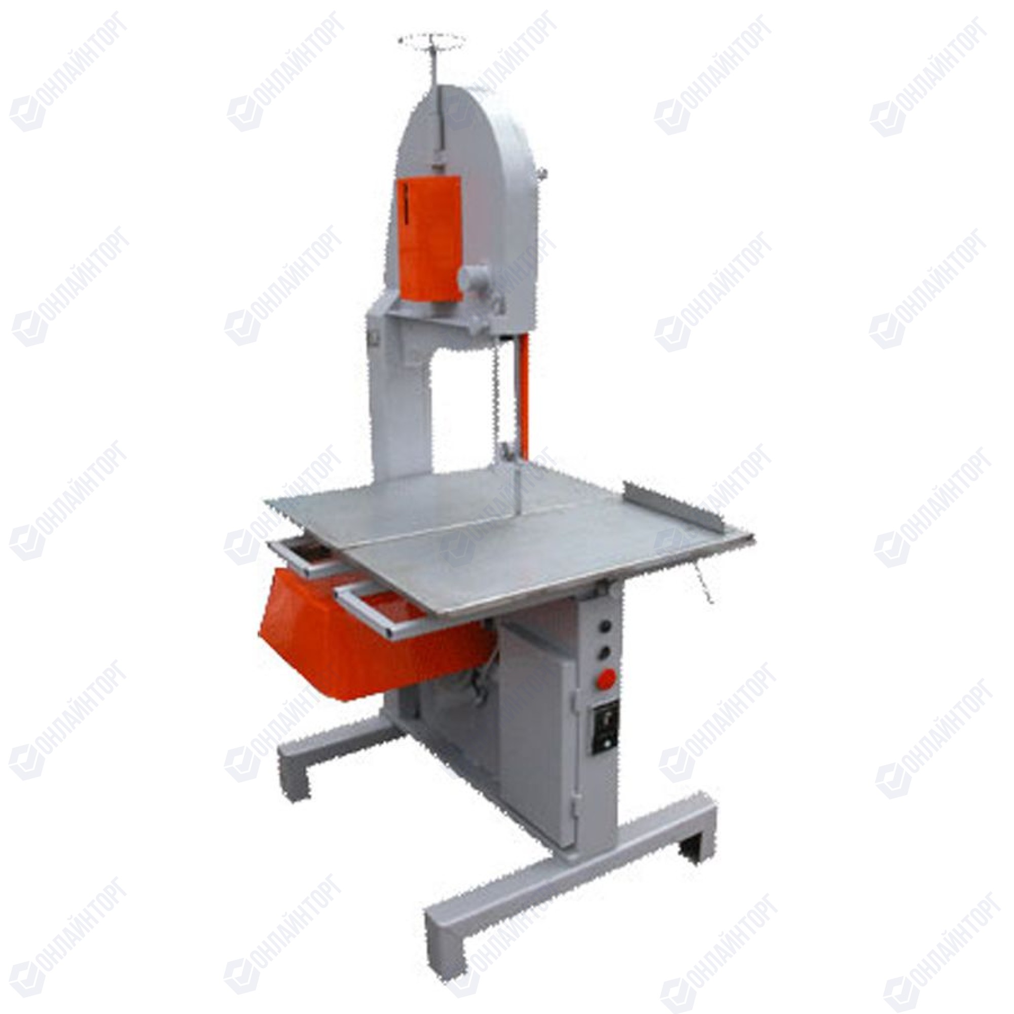 Пила напольная ленточная для мяса В2-ФР-2П (вертикальный просвет 450 мм) предназначена для разрезания отрубов мяса, полутуш и туш диаметром до 450 мм. Позволяет распиливать замороженное и свежее мясо, кости и мясо на костях.